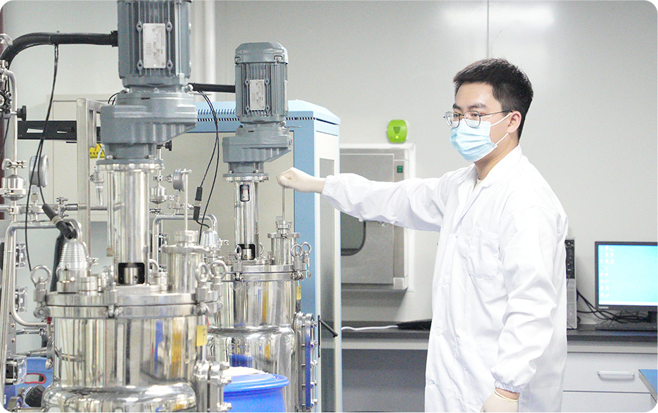 由發(fā)酵實驗室、檢測實驗室組成,配置有5L-50L-100L-1000L的不同體積的發(fā)酵罐,以及多種精密檢測儀器,進行從0-1-10的發(fā)酵工藝放大,為工業(yè)化生產(chǎn)蘡定基礎(chǔ)條件。